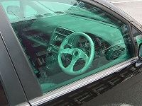 ストのウィンドウは、もとから、若干グリーンになっているのですが、更にグリーンを濃くするために、クリア・グリーンのウィンドウペイントを、フロントとフロントサイドに施してます。
